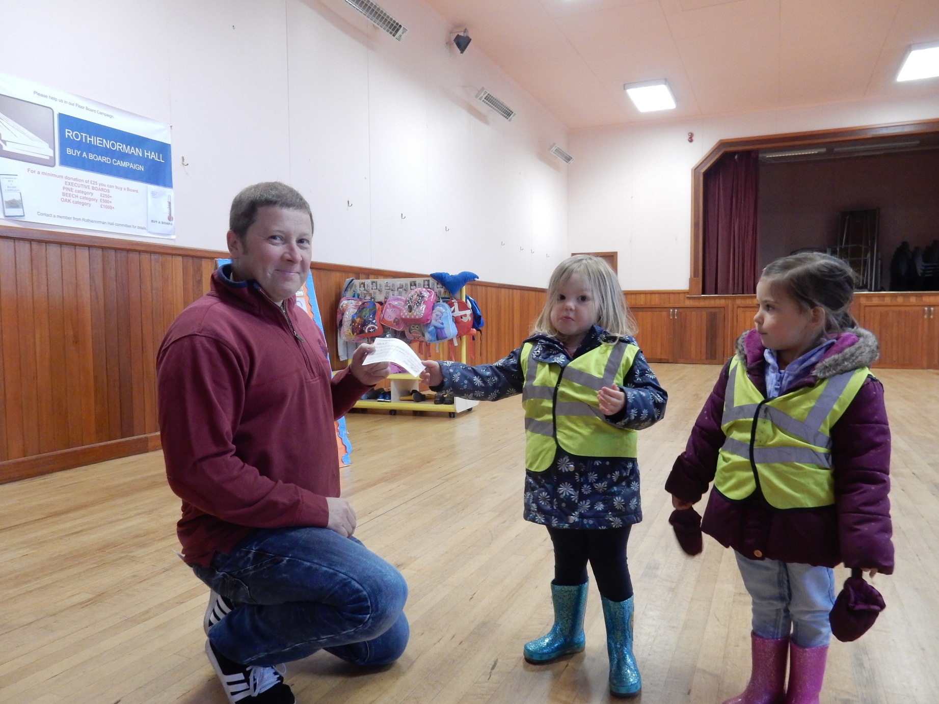 A big thank you to the Rothienorman Toddlers & Rothienorman Pre School for their generous donation of £250.00 to our Floorboard Campaign. Their donation is very much appreciated. I would also like to thank Garry Duguid for accepting the cheque on behalf of the Rothienorman Hall Committee.