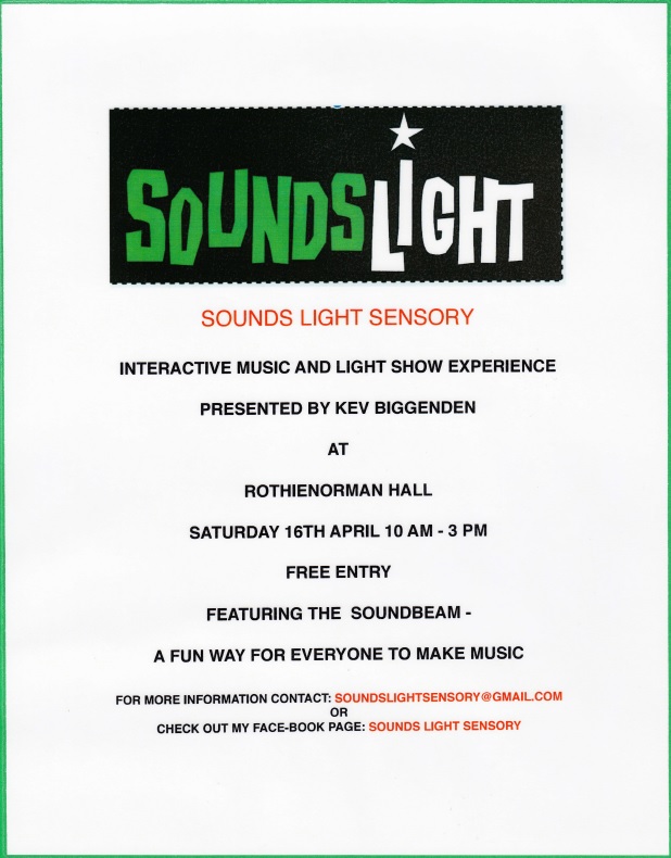 Everyone who comes along will have an opportunity to try “making music” and/or enjoy a light sensory experience.